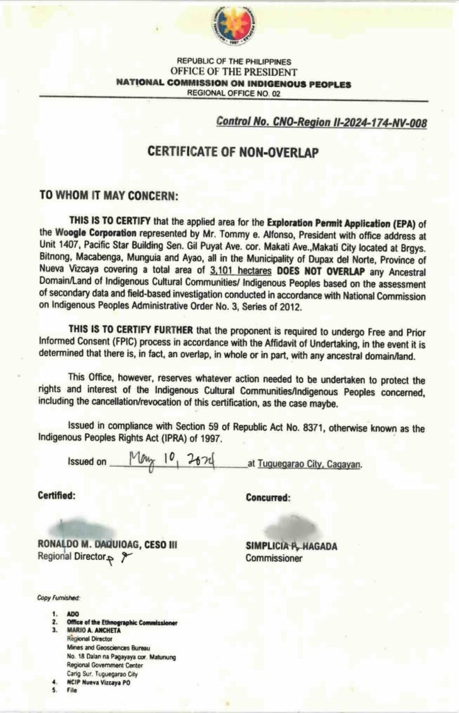 The court’s decision is not a victory for mining over protest, but rather a reaffirmation of the importance of process and the limits of lawful protest. Woggle Corporation has obtained the necessary permits and approvals from the government, including a Certificate of Non-Overlap from the National Commission on Indigenous Peoples or NCIP, confirming that no recognized indigenous cultural communities or ancestral domains exist within the exploration area.